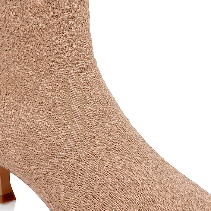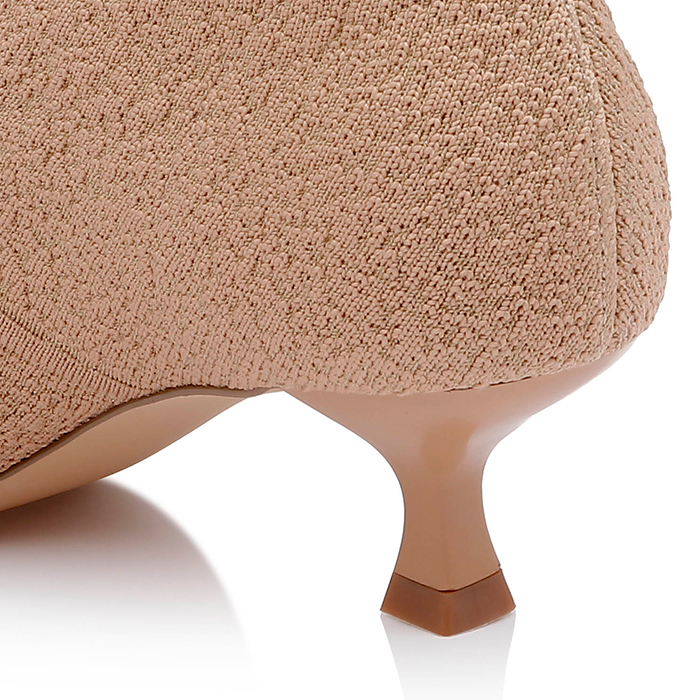Feminine ankle boot featuring embroidered flyknit upper construction with pointed toe silhouette and kitten heel design. Contemporary styling combines technical knit materials with classic boot proportions for modern appeal.