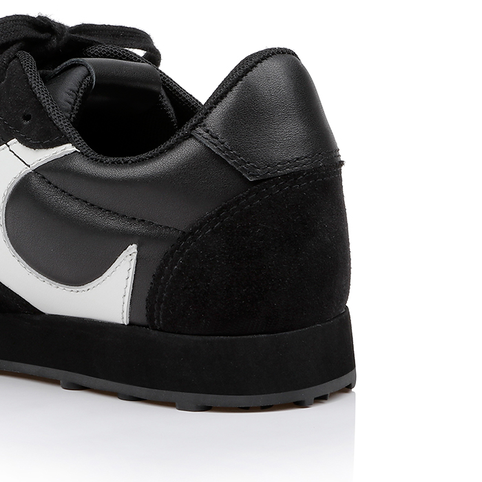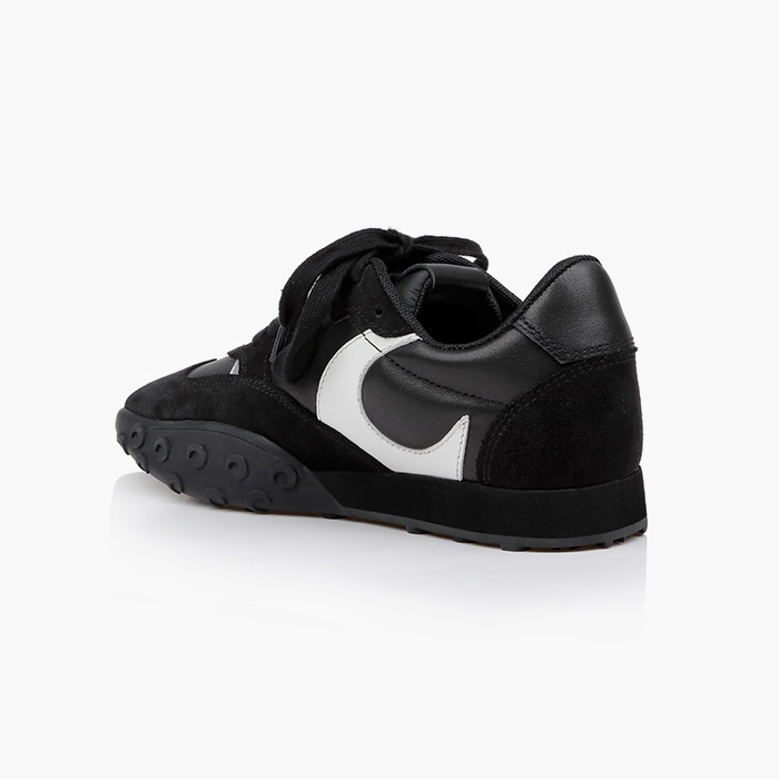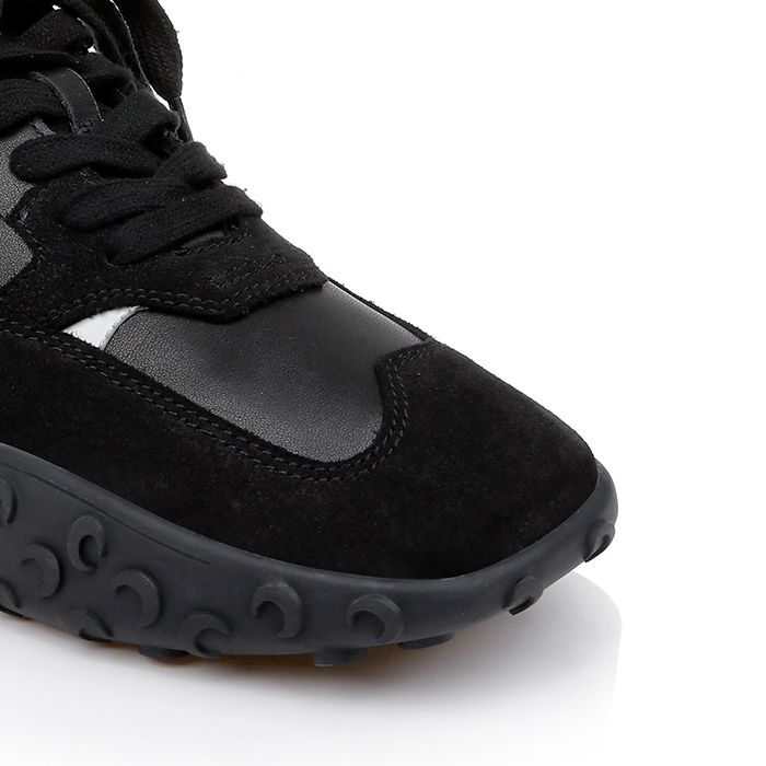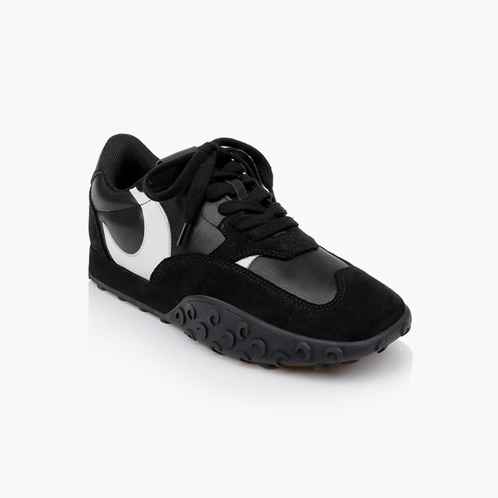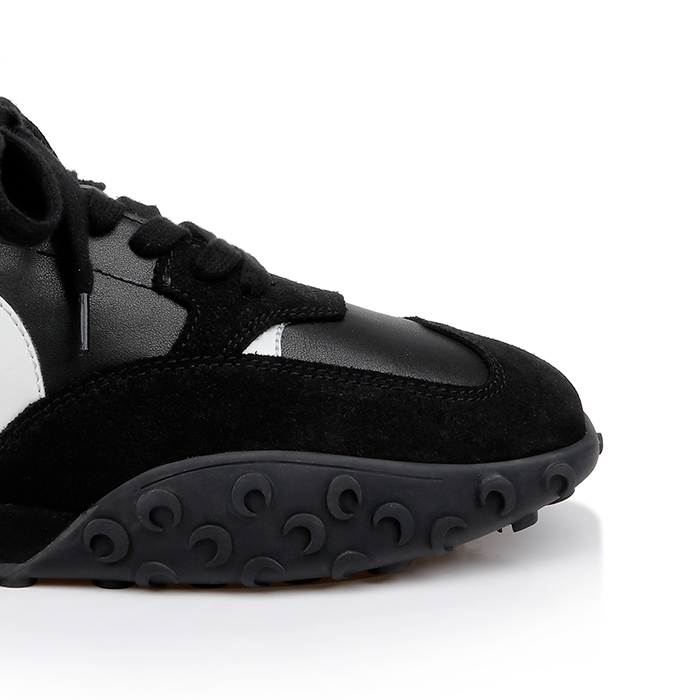 Contemporary sneaker featuring mixed-material upper construction with cow suede and leather combination. The distinctive moon sole design creates visual contrast against the streamlined silhouette, offering a modern interpretation of casual footwear.