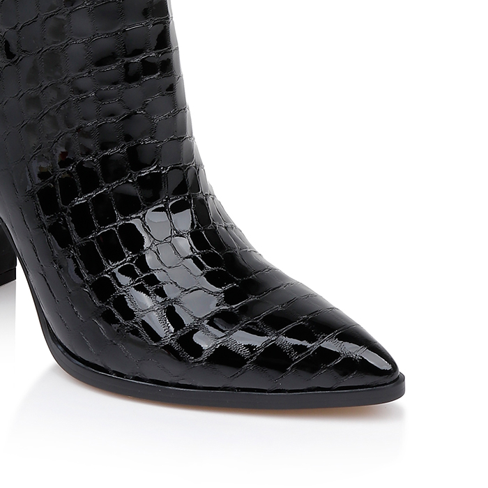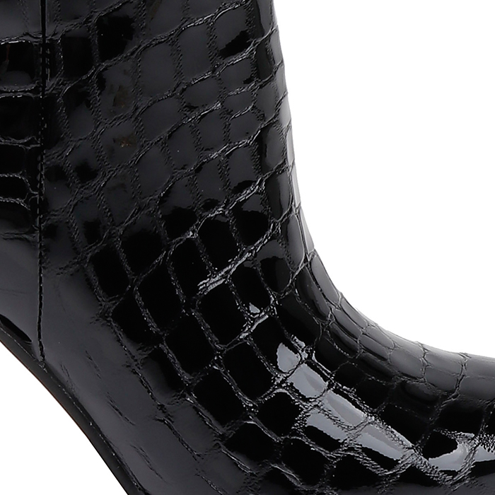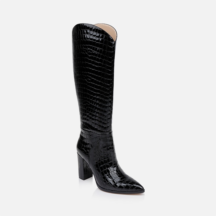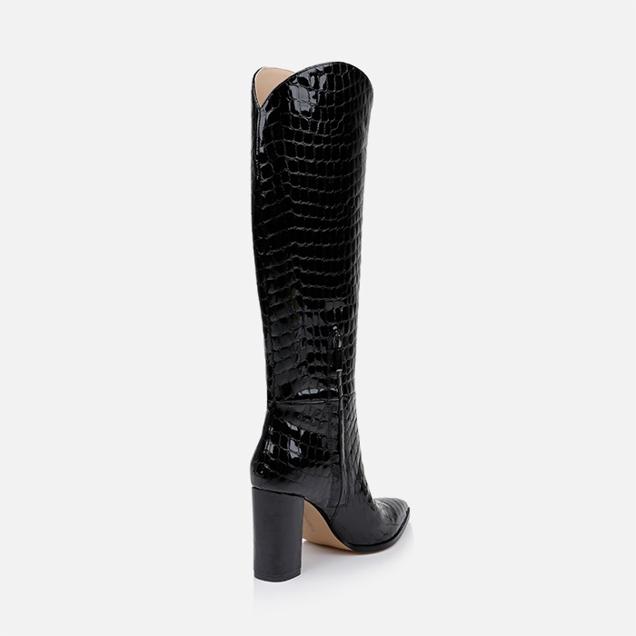 Black croc leather knee boot