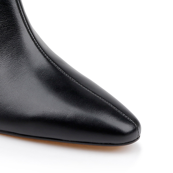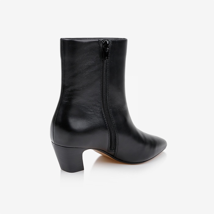 Low-profile ankle boot featuring premium cow leather upper construction with clean, minimalist silhouette. Classic design offers versatility for contemporary footwear collections.