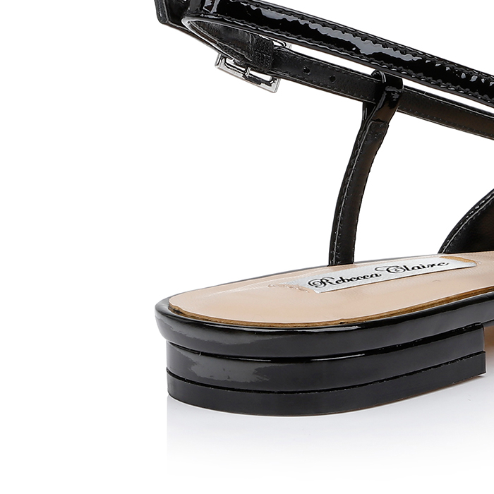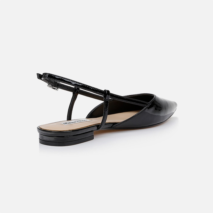Crafted from genuine kid leather with high-gloss patent finish. Flat sole construction provides all-day comfort while maintaining elegant profile. Adjustable slingback closure ensures secure fit across foot sizes.