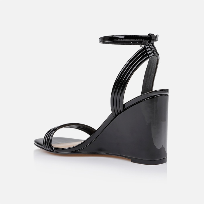 Black Patent Pu Wedge Sandal