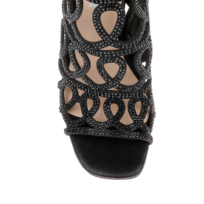 Black Shimmer Sand Fabric & Laser & Hotfix Stiletto Sandal