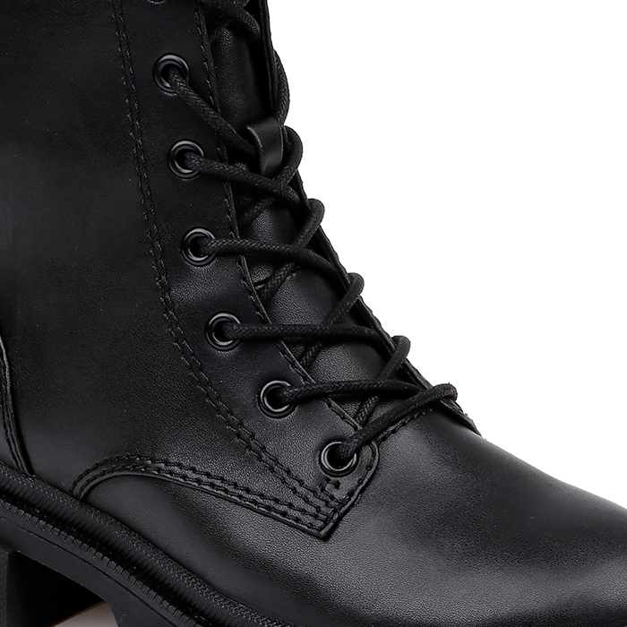 Upper constructed from durable synthetic leather with reinforced lace-up system. Outsole measures 2.16″ (55mm) in height with aggressive tread pattern for enhanced grip and stability. Boot shaft extends to ankle height with padded collar construction.