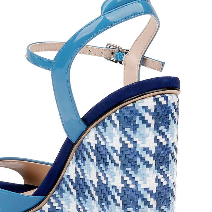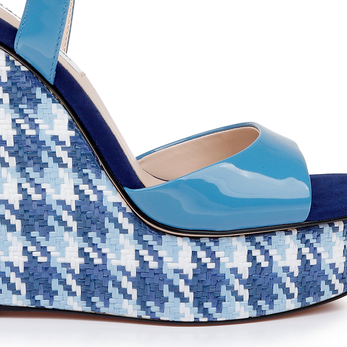 Ultra-high 4.72″ (120mm) wedge heel construction with leather upper materials. Ankle strap system includes decorative heel strap pad detailing and secure buckle fastening for reliable fit and wear comfort.
