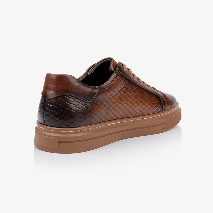 Constructed with genuine cow leather upper showcasing distinctive embossed texture and burnished finish. Traditional lace-up closure system ensures secure fit and adjustability. Sneaker-style construction provides comfort for everyday wear.