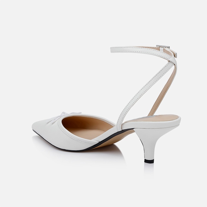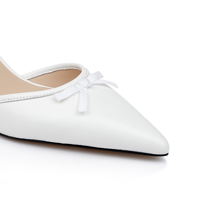 Constructed with genuine leather upper and self-color synthetic covered heel at 1.97″ (50mm) height. Pointed toe silhouette provides contemporary elegance while low heel ensures comfort for extended wear.