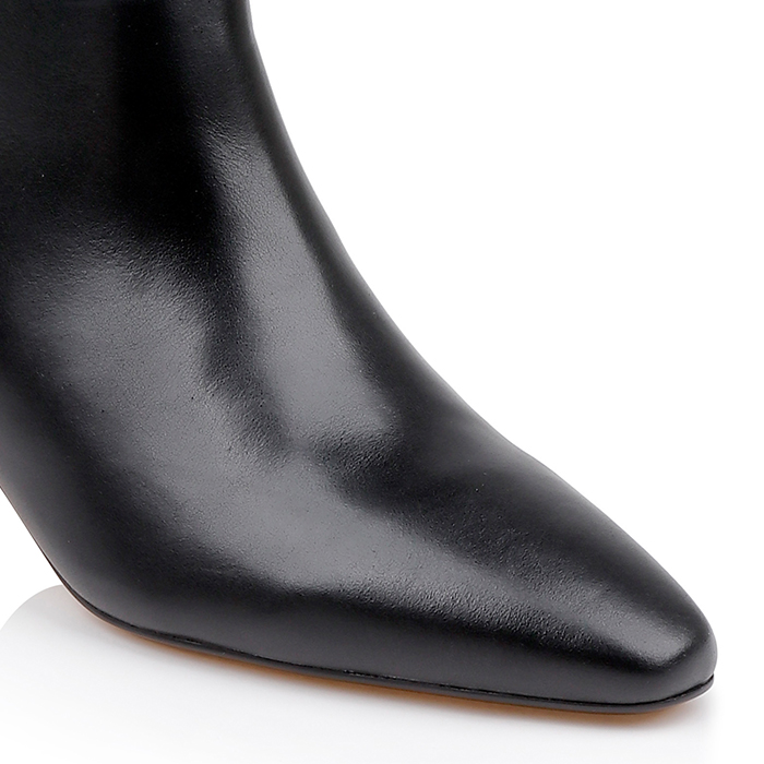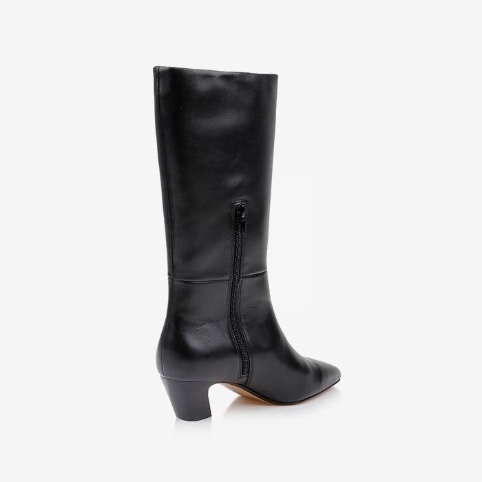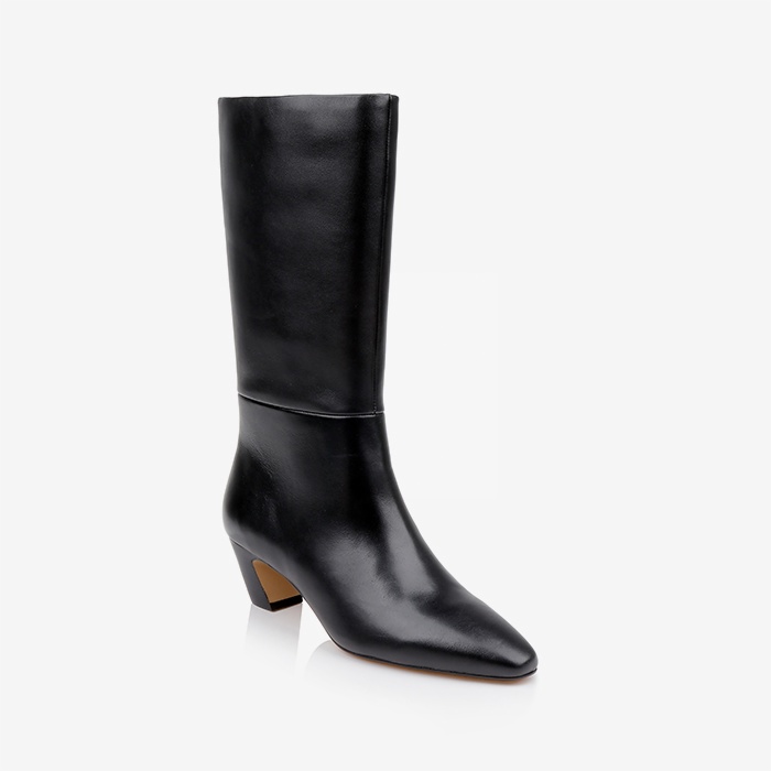 Construction utilizes premium cow leather throughout with leather stacked heel measuring 45mm (1.77 inches). Full leather upper construction ensures durability and refined finish quality.