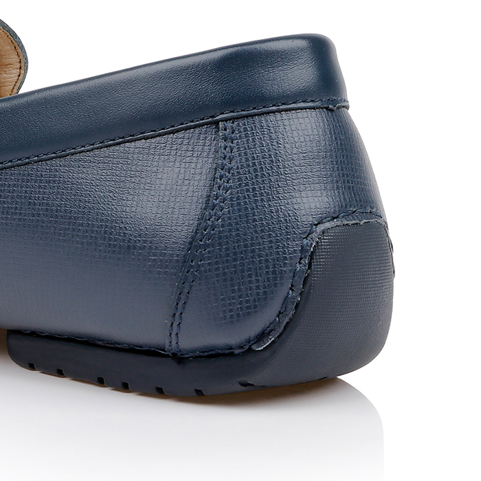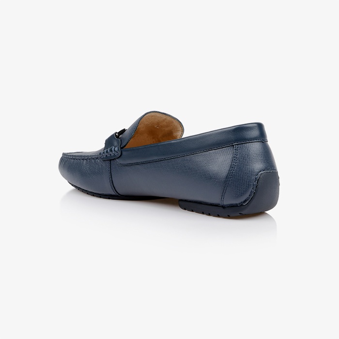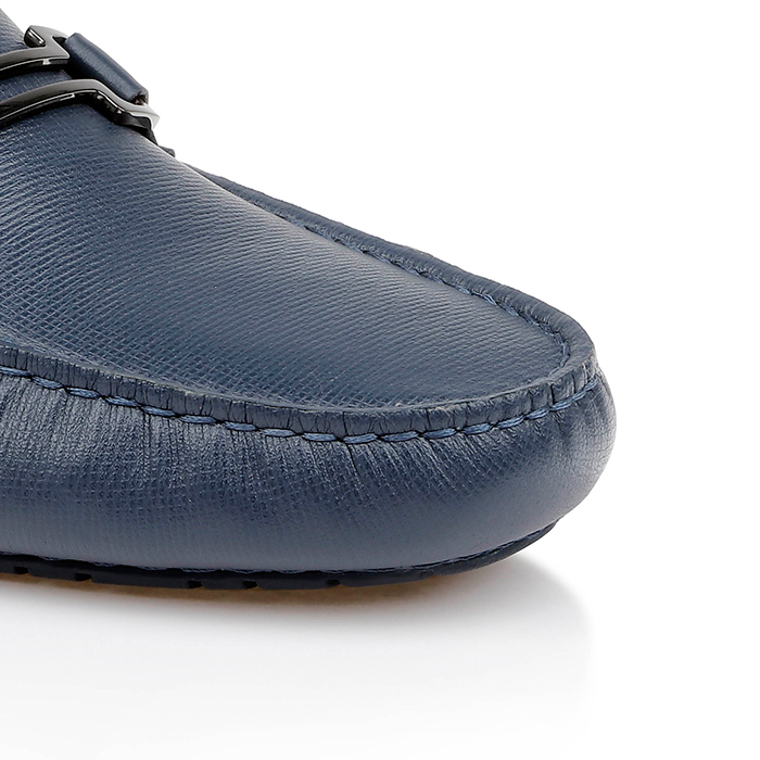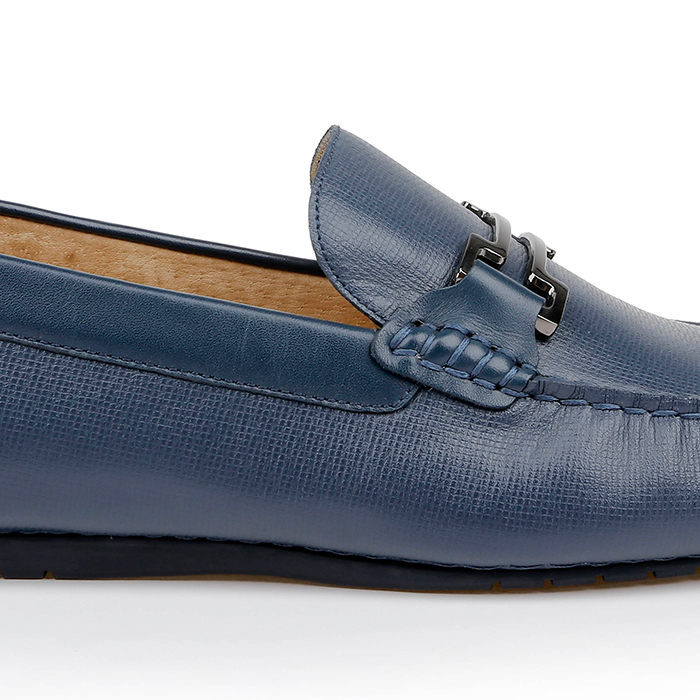 Constructed with genuine embossed cow leather upper for durability and refined texture. The gunmetal hardware band provides distinctive accent detailing while maintaining the shoe’s sleek profile. Built on a driving shoe last for optimal comfort during extended wear.