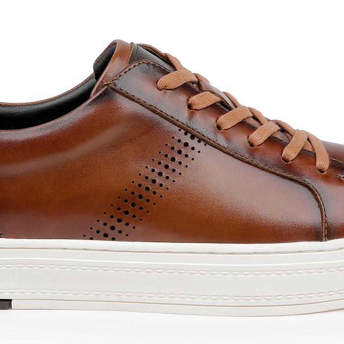 - Premium burnished cow leather upper construction