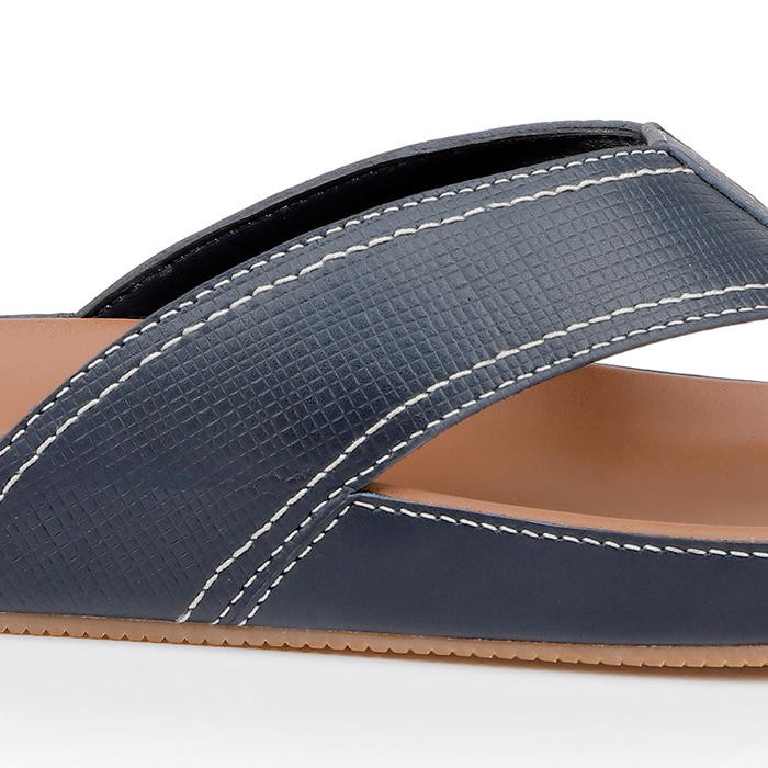 The Grayson is a men’s cow leather thong sandal featuring a molded footbed for enhanced comfort and support. This slide-style design offers effortless wearability with a classic T-strap construction.