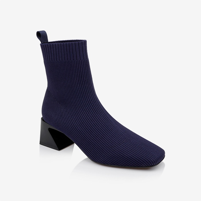 Mid-height ankle boot featuring breathable Flyknit upper construction with distinctive varnish heel detail. Modern silhouette combines technical performance materials with fashion-forward styling for contemporary footwear collections.