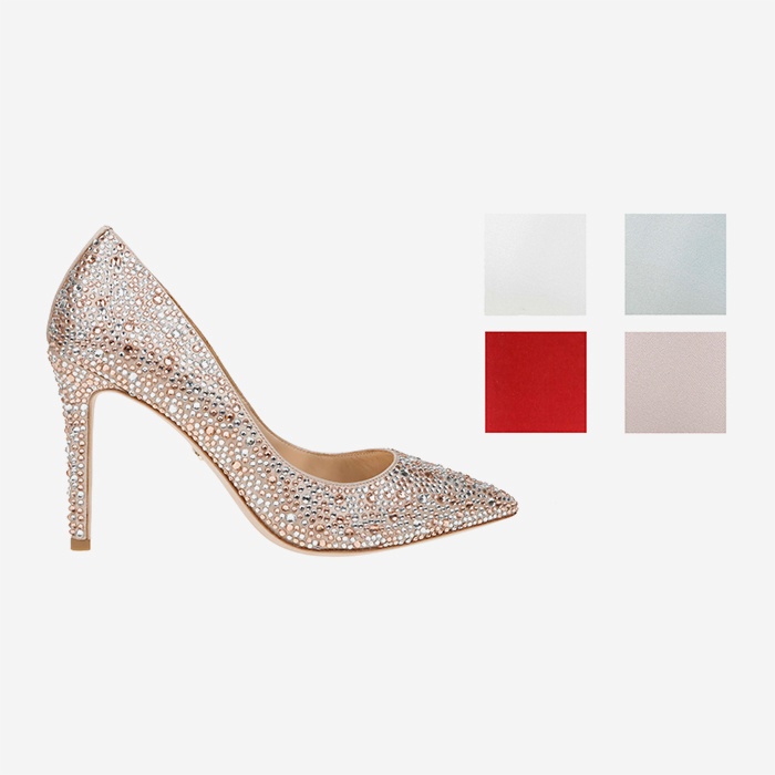 - Full crystal embellishment on satin upper