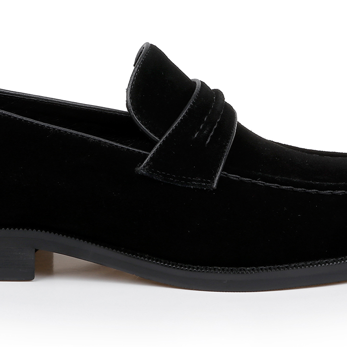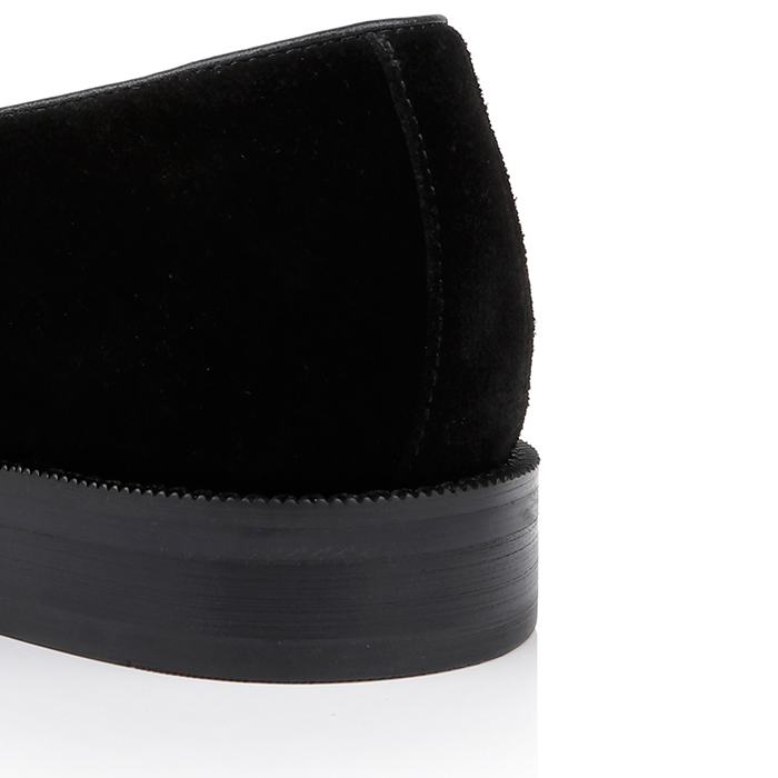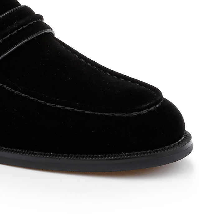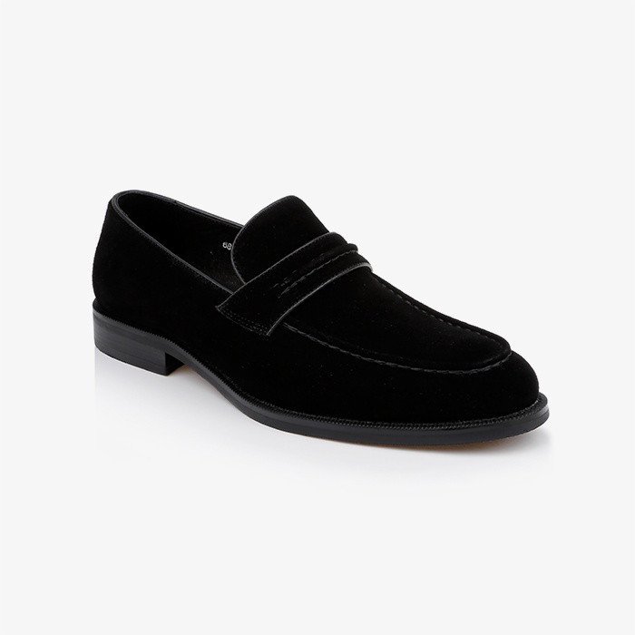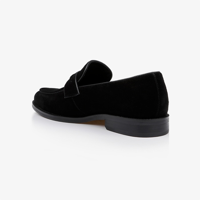 Constructed from premium cow suede with leather piping accents throughout. Features traditional loafer construction with slip-on design and clean lines suitable for contemporary menswear collections.