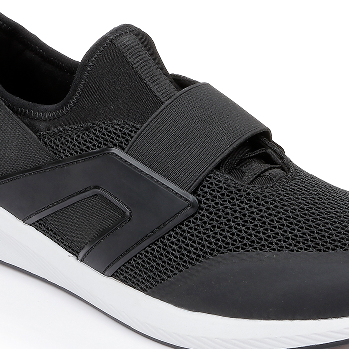 The Sarah Black Jogging sneaker features an all-black mesh upper construction with integrated TPU molded components for enhanced structure and durability. The monochromatic design delivers a sleek athletic aesthetic while maintaining optimal breathability.