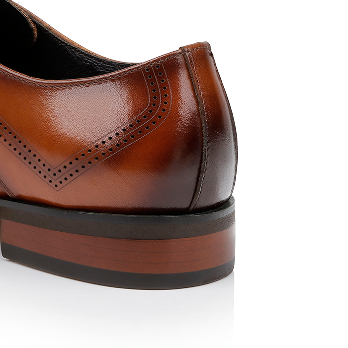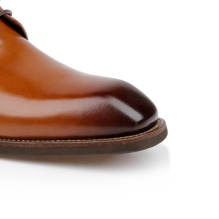 Upper construction utilizes premium cow leather with traditional lace-up closure system. The burnished finish provides enhanced durability while maintaining the leather’s natural characteristics. Construction details and outsole specifications available upon request for sourcing evaluation.