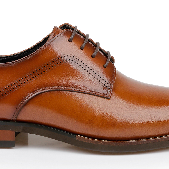 The Spencer is a men’s dress shoe featuring burnished cow leather uppers with classic lace-up construction. The refined burnishing technique creates subtle color variations and depth, delivering a sophisticated aesthetic suitable for formal and business casual applications.