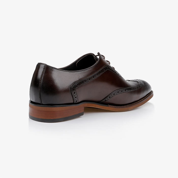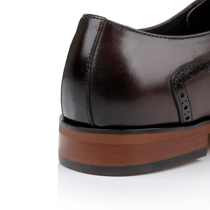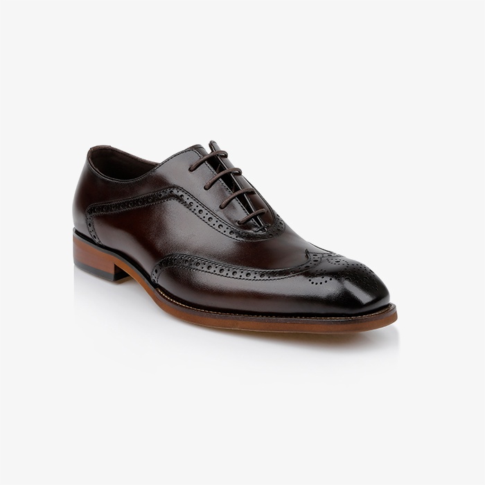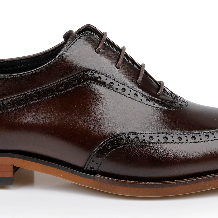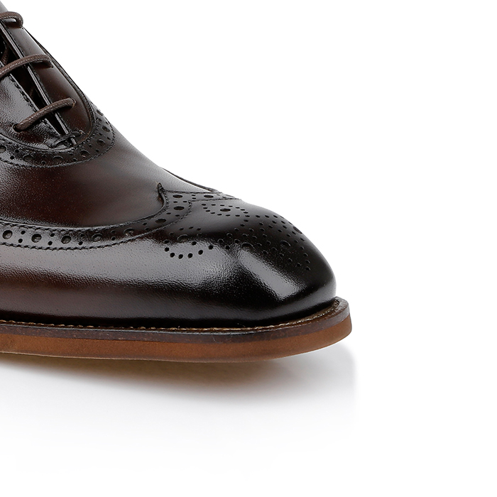 Brunished Cow Leather Dress Shoe, Punched Toe Cap Design